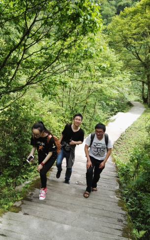 伴著明媚的陽光我們開啟了登山之旅,1700米的高度并沒有讓我們卻步,登山路上雖是汗流浹背,但卻能夠靜靜欣賞四周的美景,品味自然志趣。一路上綠意盎然,遠處高山層疊,近處流水潺潺,隨著高度的增加,壯觀的瀑布映入眼簾,陽光照耀下,瀑布像鍍上了一層金色光環(huán),美不勝收。汗水打濕了衣服和頭發(fā),腳步也越發(fā)沉重,但方法人沒有一個人放棄,大家自發(fā)地為自己、為對方加油打氣,再短暫休息后又卯足了勁繼續(xù)前進。